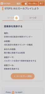 ロールプレイの一覧から教材をクリックするとレッスンがはじまります。